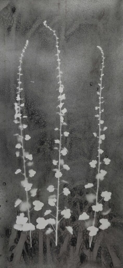 Fulya Çetin’in eserleri, doğayla insan bedeni arasındaki çizgiyi belirsizleştiriyor. Yumuşak renkler, akışkan formlar ve yer yer bilinçdışıyla temas kuran imgeler, seyirciyi tanıdık bir yabancılığa davet ediyor. Seyirci olarak gözümüzü kimi zaman toprakta, kimi zaman insan bedeninde; kimi zaman bitkisel olanın, kimi zamansa düşsel olanın çevresinde gezinirken buluyoruz. Bu eserler, doğanın sadece arka plan olmadığını, insan ve insan olmayan sayılamaz çoklukta faili kuşattığını hatırlatıyor.