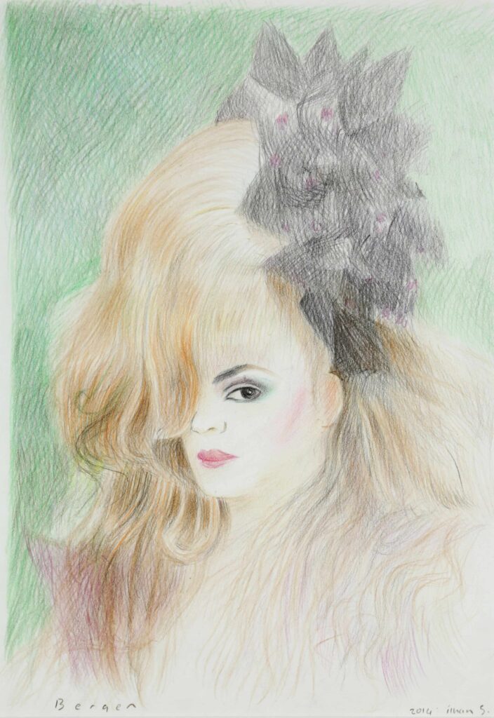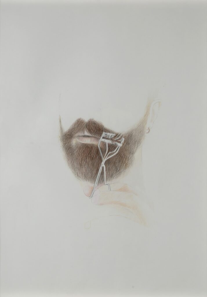 İlhan Sayın’ın sergide dikkat çeken eserleri arasında otoportreleri de yer alıyor. Kendini bıyığını kıvırırken ya da hafif kelleşmiş saçını tararken tasvir ettiği bu otoportreler, alışılageldik güzellik ve beden imgelerini kırarak insan bedenini olduğu gibi kılıyla, tüyüyle, çatlağıyla ve eksiğiyle gösteriyor. Sayın, bu resimlerle ana akım anlatıya kuir bir gedik açıyor; bedenin kusurlarını ve sıradanlığını kucaklayarak normatif kalıpların dışına çıkan bir estetik ve varoluş dili yaratıyor.