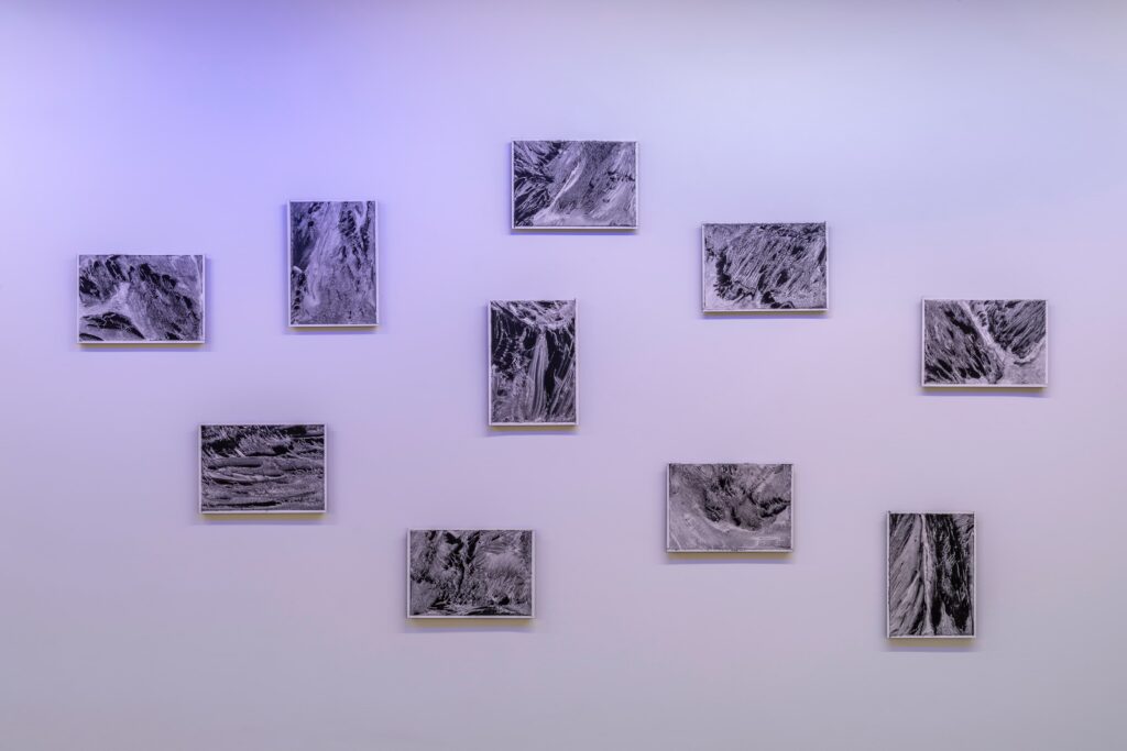 Serginin açılışını yapan Sinem Dişli’nin kristalleşen yüzeyleri, kimyasal artıkların kendi topografilerini oluşturmasına olanak tanıyor. Burada imge, daha ilk anda insanın kurduğu temsil düzeninden çıkarak maddenin özerk bir jestine dönüşüyor. Dişli’nin yüzeyleri birer fotoğraf değil; fotoğrafın ardında kalan, çoğu zaman görünmez olan kimyasal sürecin bizzat kendisidir. Bu noktada manzara âdeta kendi kendini kuruyor gibidir.