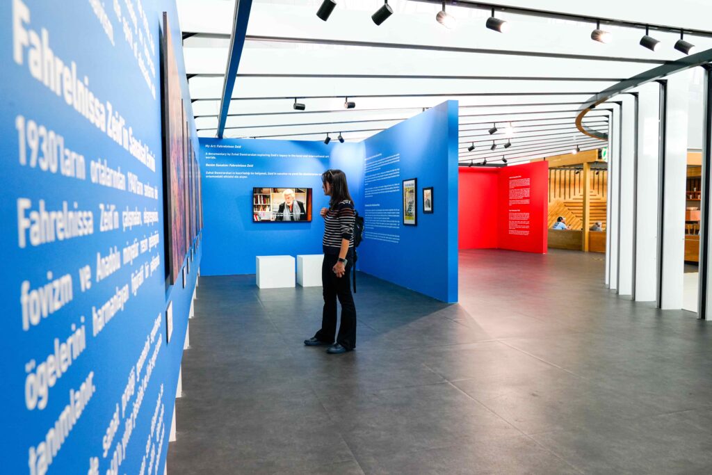 Sergide Yahşi Baraz koleksiyonundan fotoğraflar ve orijinal afişler; Gülveli Kaya, siz ve yine Baraz’la gerçekleştirilmiş söyleşiler; Zuhal Demirarslan’ın hazırlayıp sunduğu Benim Sanatım: Fahrelnissa Zeid belgeseli ve kitaplar yer alıyor. Eser görselleriyse Mustafa Taviloğlu, Serdar Altınalmaz ve Öner Kocabeyoğlu’nun koleksiyonlarından oluşuyor. Sizce bu arşivler ve sergi nasıl bir Zeid arşivi sunuyor? Sizce bu materyallerler transit geçiş hâlindeki ziyaretçilerin ilgisini nasıl çekebilir?