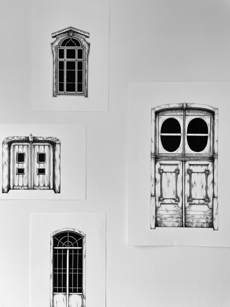 Berka Beste Topuz, Damla Yalçın ve Sinan Logie’nin kolektif bir düşünce sunumu olarak da ele alabileceğimiz sergide mekân; kendi olgusal özelliklerinden uzaklaştırılarak adeta hatırlatmaya odaklı bir yazılı bellek edasıyla barındırdığı tekrarlar, gölgeler, boşluklar, kapılar, pencereler, sahip olduğu tüm aralıkları ile ele alınıyor, anlamlandırılıyor.