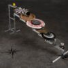 Gökçe Hiçyılmaz, “Makine Beden” adlı, buluntu malzemeleri kullanarak oluşturduğu heykel çalışmasında, post-kapitalist sistemin 7/24 dayatmasına uyumlanmaya çalışırken kablolarla, borularla, çok sayıda ayakla dönüşüme uğrayan bir beden kurgular. “Makine Beden”, Jonathan Crary’nin “bir 7/24 dünyası gölgelerin, loşlukların ve birbirinizi izleyen zamansallıkların kökünü kazıması bakımından büyüsü bozulmuş bir dünyadır.”[5] cümlesini hatırlatırcasına, bir post-insan formu olarak sergideki yerini alır.