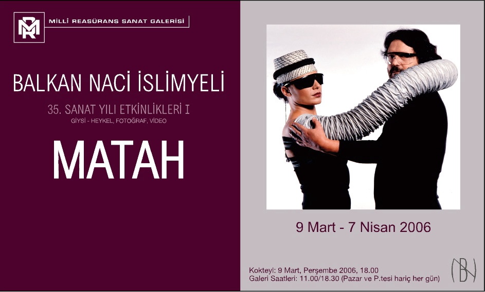 Balkan Naci İslimyeli’nin 1970’lerden bu yana “giysi”yi irdelediğini izliyoruz. İlk dönem (1980’ler) resimlerinde, fotoğraflarında ve enstalasyonlarında iki tür insan imgesi yer alır: Klasik ya da modern “şık” insanlar ve geleneklerin ve törelerin öngördüğü giysi türlerini taşıyan insanlar. O dönemde farklı bir üretim olarak dikkati çeken gravür kolajlarında klasik şık insanlar -ki bunlar Osmanlı ya da erken Cumhuriyet burjuvazisidir- izlenir. Bu gravürlerin bazılarında giysilere bir rol verilmiştir, ya da iki gravür kadın portresinde olduğu gibi yabancılaştırıcı, grafik ya da pop müdahaleler yapılmıştır. Buna karşın fotoğraf ya da sinema etkili, kadın-erkek karşılaşmasına değinen karakalem resimlerinde -ki bunlar Türkiye’nin geç modern kentsoylu sınıfını ve yeni toplumsal düzenin yabancılaştırıcı etkilerini temsil eder- en aza indirgenmiş, sade giyimler dikkati çeker. 80’li yılların siyasal, ekonomik, toplumsal ve kültürel post-modern kırılmaları sonrasında 90’lı yıllarda İslimyeli’nin sanatında, başlangıçta sözünü ettiğimiz yoldan çıkmalar birbirini izledi. İslimyeli, ötekini kendinde tanımlamaya başladı. Öteki ile ilgili bütün yargı ve değerlendirmeleri kendi üstünde deneyeme başladı ve performans yapıtları (fotoğrafla belgelenmiş performanslar) ortaya çıktı.  Bu yapıtlarda İslimyeli’nin geleneksel ortak kimlik ile modern bireysel kimlik arasındaki bağları ve kopmaları irdelediği izlenir; performanslarda geleneksel ve mistik çağrışımlı giysiler başat kimlik ögeleridir. Bu yapıtlarda geleneksel ve post-modern kimlik irdelemeleri yanında, 1991’de ürettiği ve New York’ da sergilediği “Deli Gömleği” başlıklı dizide olduğu gibi erkek kimliği ile ilgili psikoanalitik bir irdeleme de yer alır. Bu dizideki giysi tasarımında, Matah’da izlediğimiz özelliklerin, kimlik arayışı, tüketim fetişizmi, cinsel fetişizmin tohumları atılmıştır. Aynı dönemde bu yapıtlara, makro ve mikro mekân yorumlamaları eklendi. Bu resim, fotoğraf ve yerleştirme dizilerinde de giysilerin, yapıtın kavramını ve içeriğini belirleyici göstergeler olarak kullanıldığını izliyoruz.