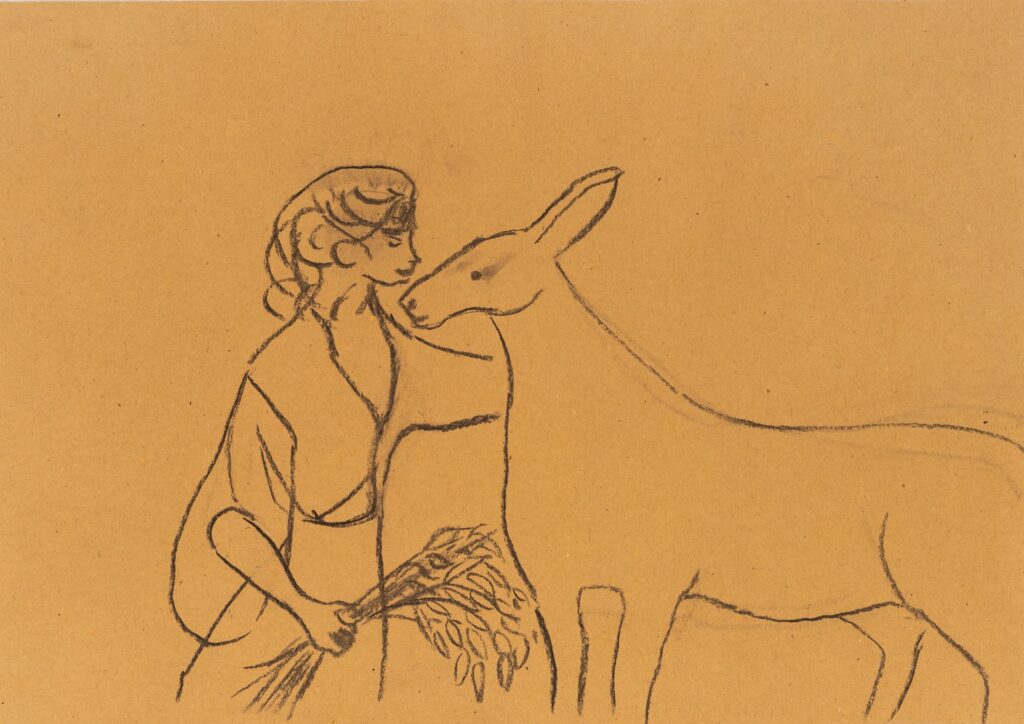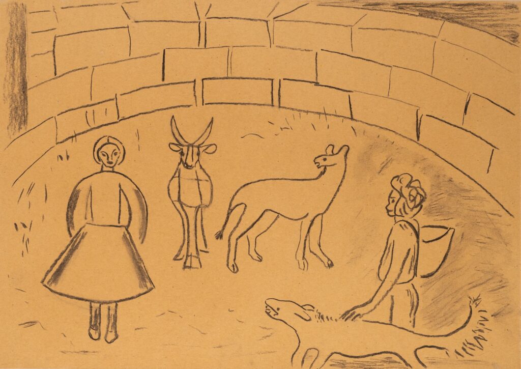 Simone Forti’nin Three Grizzlies adlı işi, hayvanat bahçesindeki üç ayının sürekli volta atışını gözlemleyerek tutsaklığın beden üzerindeki ritmik direnişini ortaya koyuyor. Hayvanların daireler çizerek dolaşmalarını, yuvarlanışlarını, usulca süzülüşlerini eskizler yaparak betimleyen sanatçı sessizliğin direnişini belgeliyor. Hayvanların sessiz direnişi ne kadar büyürse büyüsün, dertlerini anlatamayacak olmaları insanı kedere boğuyor.
