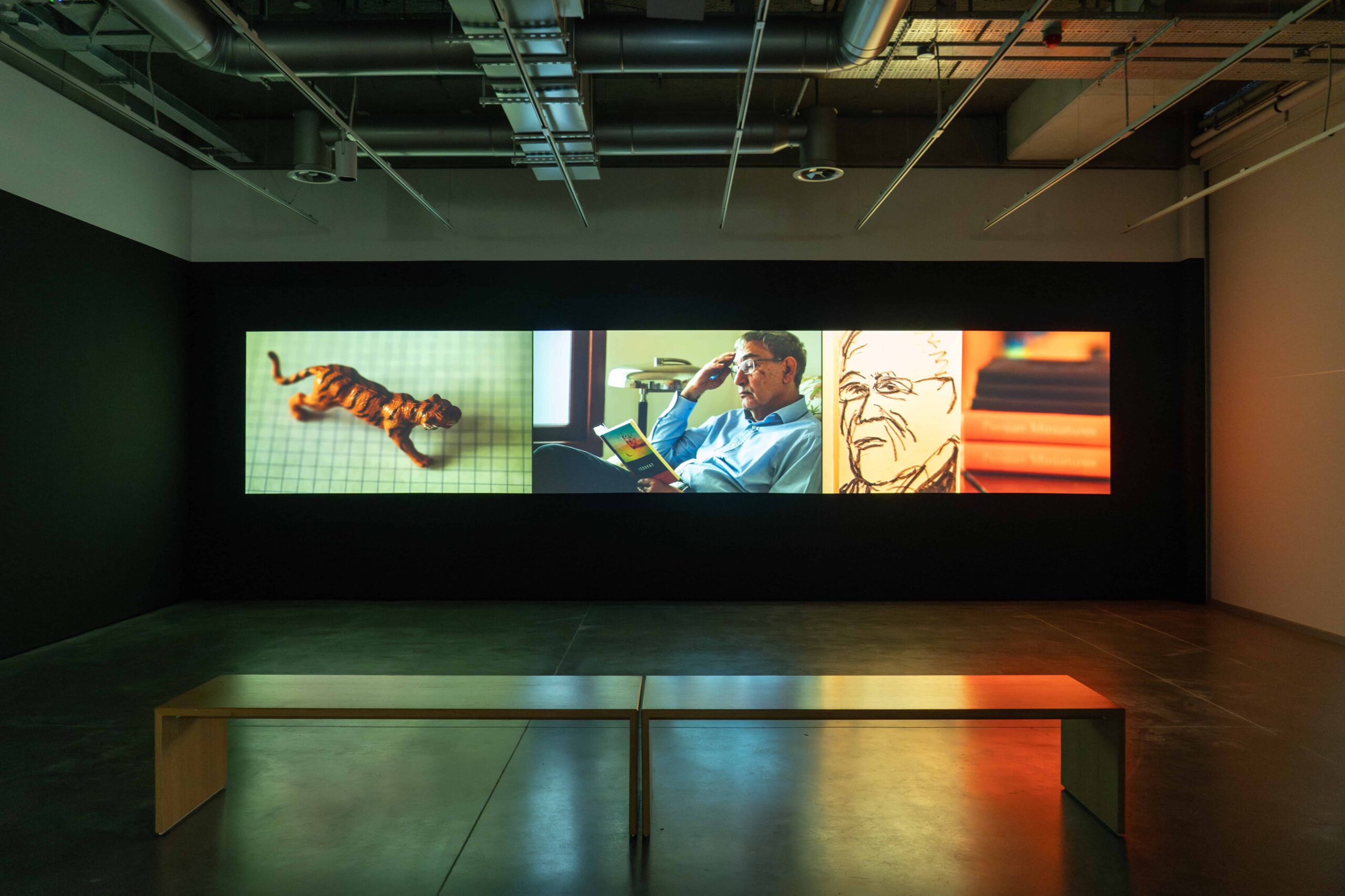 Sergiyle devam etmek istiyorum. Burada da artık soruları biraz Ali Kazma’ya yönlendireceğim. Şimdi birincisi, serginin başlığı ve genel konseptiyle alakalı olarak zaten temel meselelerden birisi, yazarın zihnini bir manzara resmi gibi tahayyül etme ve onun üzerine düşünme. Az önce de aslında Alberto’yla bu konuya dair uzun bir giriş yaptık. Yani bu enteresan bir eşleşme çünkü bir zihni görmek, bir zihni görmeye çalışmak enteresan bir olay temelinde, farklı türden bir arzu. Bunu videoyla yapmak bence, işte görsel işlerle yapmak daha da zor bence, çetrefilli de bir iş. İlk olarak bu fikir, serginin merkezinde yer alan bu temel yaklaşım nasıl gelişti?