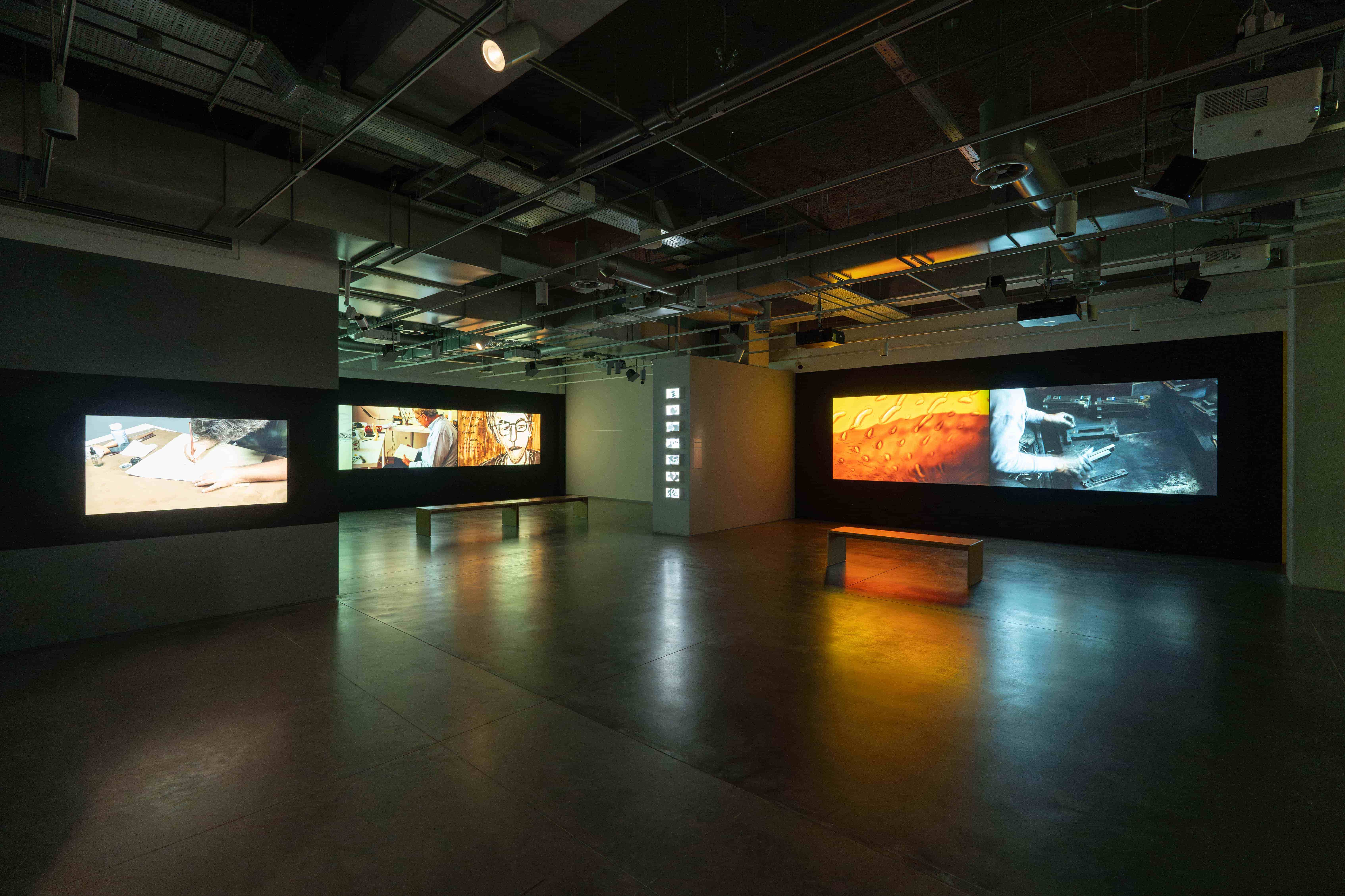 Bu sergide beni uzun süredir ilgilendiren bir düşünceyi görselleştirmeye çalıştım. Altı video gösteriyorum ama başka işlerim de var: Lozan’da büyük bir matbaada yaptığım Press, Paris’teki en eski litografi stüdyolarından biriyle gerçekleştirdiğim bir çalışma, Wooster Group’un Hamlet performansıyla ilgili bir iş, yere kanvas serip üzerinden geçen bir ressamla ilgili video… Bunlar burada gösterilmiyor ama aynı tematik çerçeve içinde düşünülebilir.