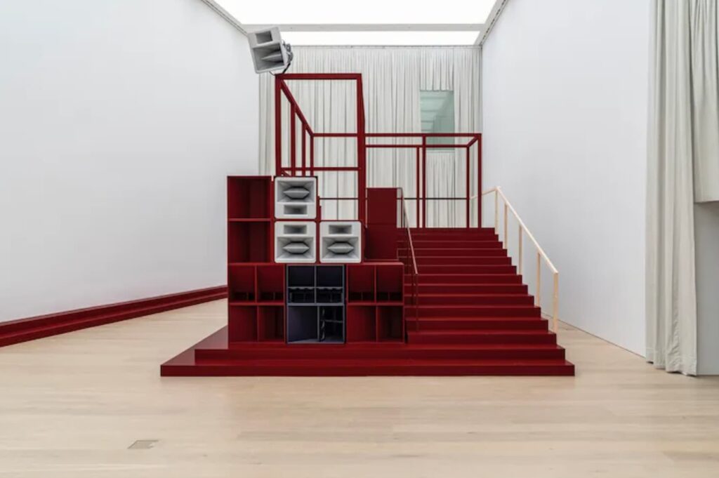 Çok kanallı ve parçalı yapı, hem sunağın Berlin’e taşınırken uğradığı fiziksel ve tarihsel parçalanmaya hem de bugün hâlâ süren güç, iktidar, sürgün ve yerinden edilme meselelerine gönderme yapıyor. Aktif hoparlörlerle boş kasaların dönüşümlü kullanımı, tıpkı sunağın eksik ve yeniden inşa edilmiş frizleri gibi, tarihin her zaman tamamlanmamış ve kesintili olduğunu hatırlatıyor.