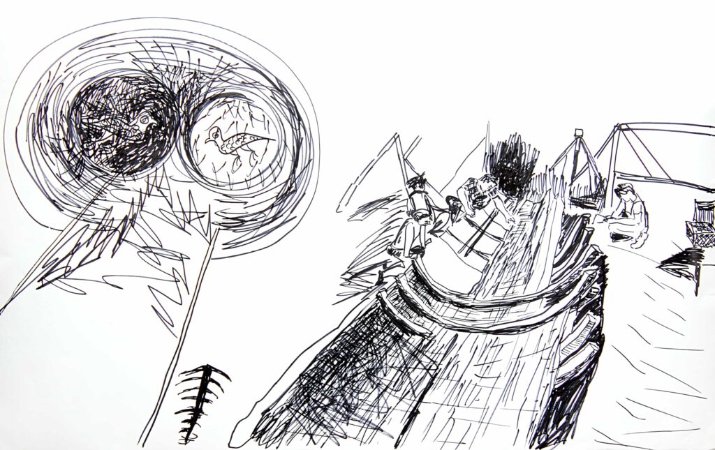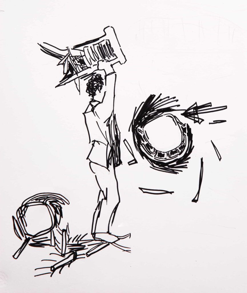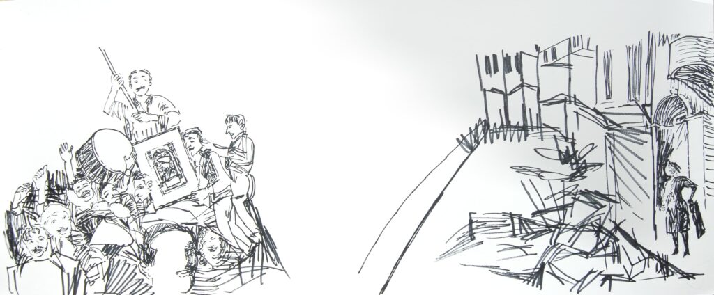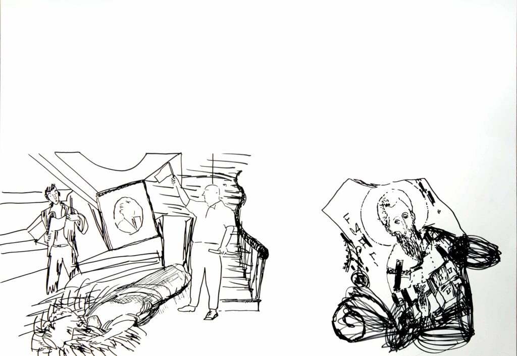 Hikâyedeki hafir (arkeolog), mistik romantik geçmişten çıkınca bugün ne yapar, onu çizmek istedim.