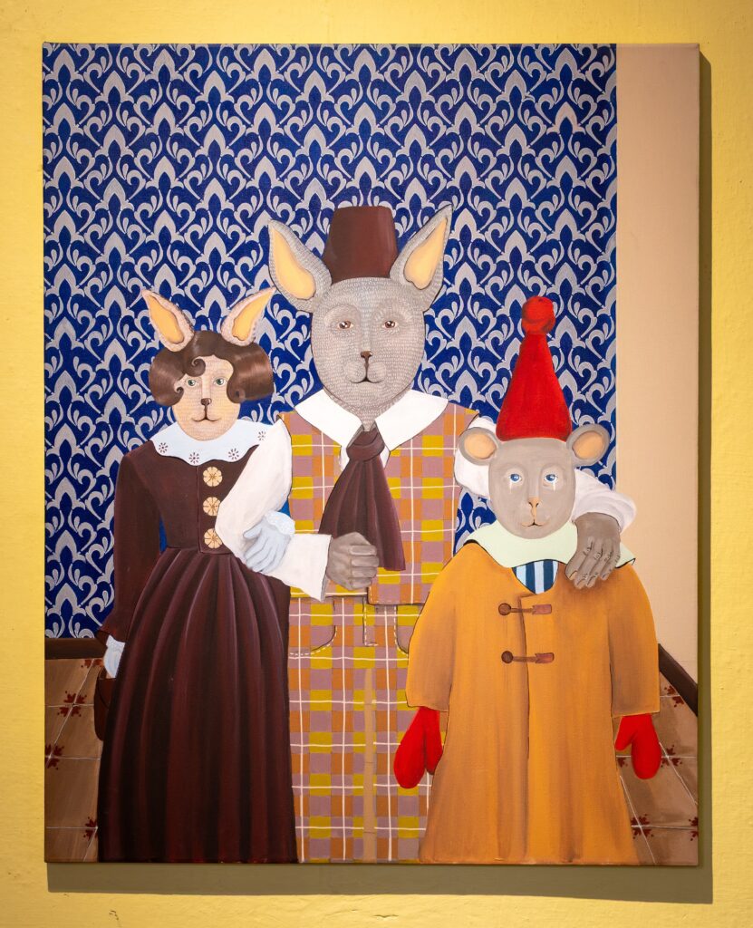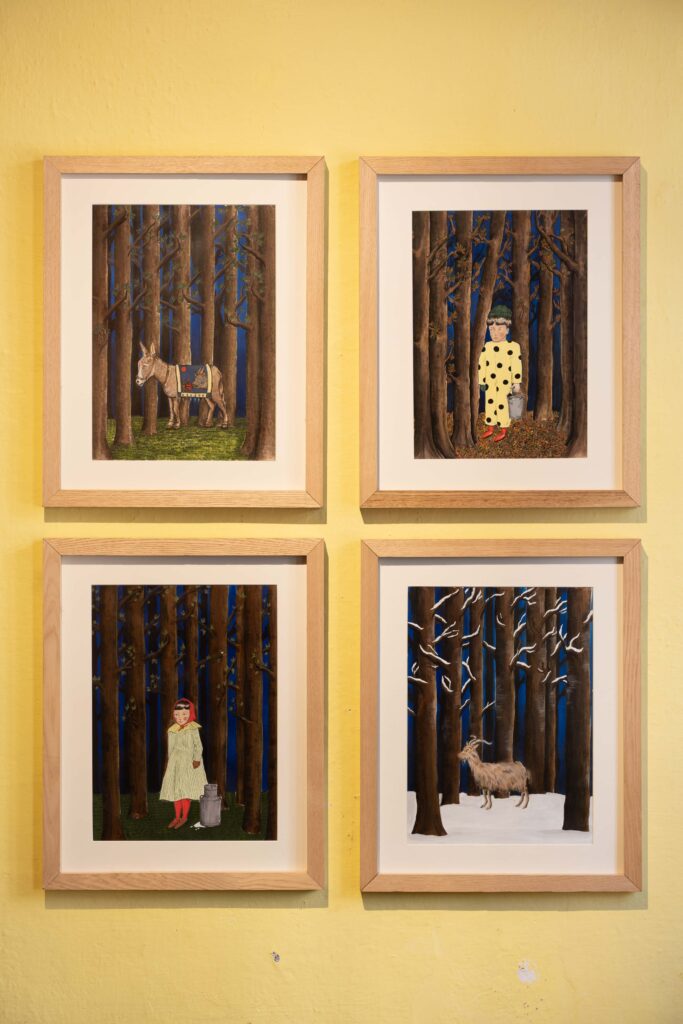 Yine Bachelard’ın Mekânın Poetikası’ndaki sözlerine kulak verirsek; “Kuşkusuz, ev sayesinde anılarımızın büyük bir bölümü yerleşecek bir yer bulur; hele de ev biraz karmaşıksa, mahzeni ve tavanarası, köşe bucağı ve koridorları varsa, anılarımız da niteliği gittikçe belirginleşen sığınaklar edinir.” Sergide de anıların dokunulur hâle geldiği kırılgan ama güçlü bir alan kuruluyor. Atay’ın eserlerindeki mekân temsilleri iç içe geçmiş duvarlar, unutulmuş eşyalar, durgun figürler ve boşluklarla örülmüş sahneler izleyiciyi yalnızca geçmişe değil, içsel bir yolculuğa da davet ediyor. Sergi, gerçeküstü atmosferiyle bir oyun alanını çağrıştırsa da tekinsiz sahneler, masalsı karakterler aracılığıyla bir hayal alemini yansıtıyor.